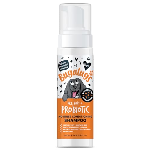 Bugalugs No Rinse Dog Shampoo for Itchy Skin with Prebiotics, Postbiotics & Probiotics for dogs - dog dry shampoo Foam dog shampoo for sensitive skin supports your dogs Microbiome |